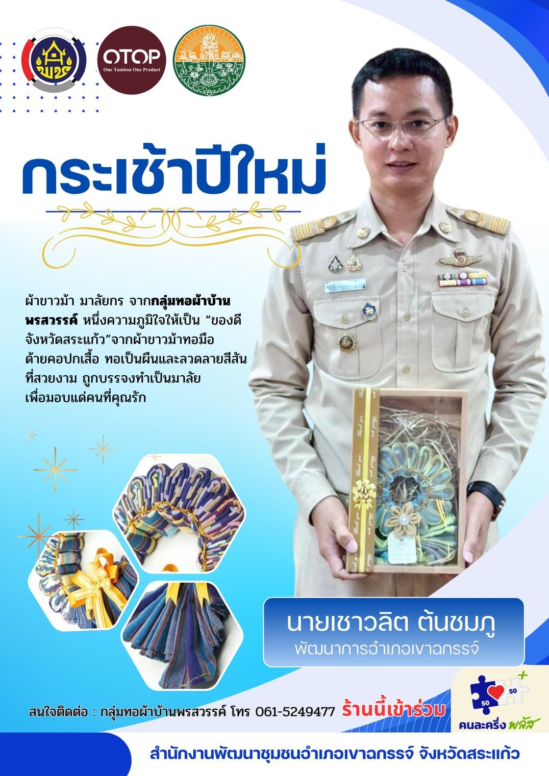 “ซื้อสินค้า OTOP เพียงหนึ่งชิ้น รายได้กระจายสู่ท้องถิ่น สร้างอาชีพ สร้างรายได้ ให้หลายครอบครัวมีกินมีใช้”