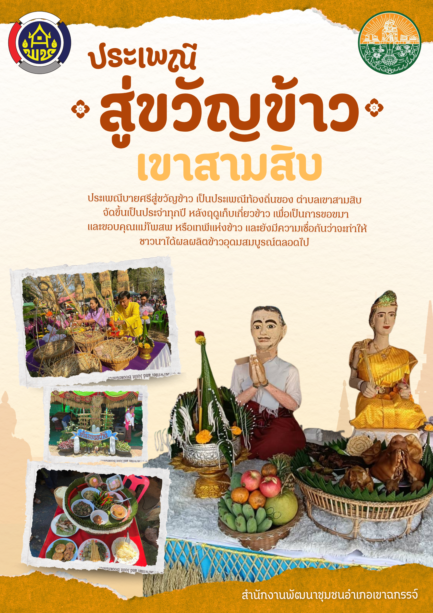 ประเพณีบายศรีสู่ขวัญข้าว เป็นประเพณีท้องถิ่นของ ตำบลเขาสามสิบ